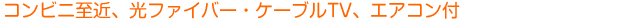 バス・トイレ別室、シャワー、収納スペース、室内洗濯機置場、エアコン、ベランダ・バルコニー、給湯 |